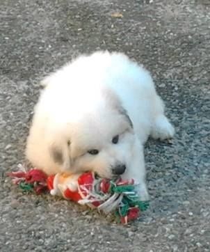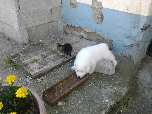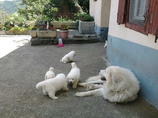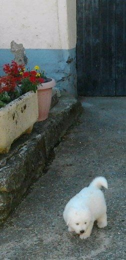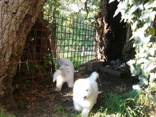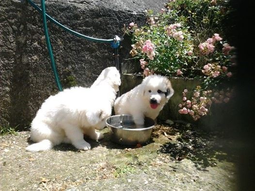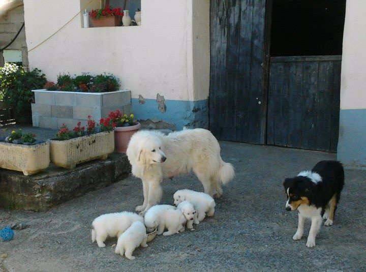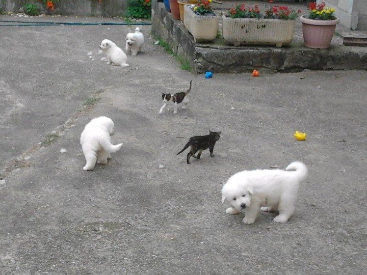 portée 2016 mâle 1 à 3 jours femelle 6 à 3 jours femelle 3 à 3 jours mâle 2 à 3 jours mâle 4 à 3 jours mâle5 à 3 jours tétée femelle 6 à 12 jours à 12 jours, les yeux enfin ouverts ! Sauf quand on dort... On découvre ses frères et soeurs... On dort encore les uns contre les autres on ne voit pas encore très bien surtout de loin ! Tous en vacances à la fermette ! Voir d'autres horizons... Maman dit aux chiens d'ici :" dégagez, montez la garde dehors !" En vacances on apprend à marcher sans glisser, on découvre... On a découvert les copeaux, les jouets, l'eau pour boire, la bouillie Il y a de la place pour éparpiller les croquettes à maman partout ! Après la bouillie ou la tétée, on s'endort les uns sur les autres ! âle N°1 : On a déjà trois semaines ! n°5 :Première sortie dehors à quatre semaines ...par grosse chaleur ! ça sent la bouillie mais elle est où la bouillie ? Maman dit aux autres chiens de se tenir loin ! Elle édicte sa loi Maman ne plaisante pas ! Les autres chiens n'ont qu'à bien se tenir. On peut manger tranquiles ! La bouillie épaisse donne soif ! Où est donc l'abreuvoir ? On est vite un peu perdu . Le voilà ! la voilà l'eau ! Quelle soif, quelle châleur ! séance débarbouillage pour qui après la bouillie ? Pourquoi se débarbouiller ? Mâle 1 : Se débarbouiller ?Moi je veux dormir ! débarbouillage qu'il fait soif ! Fem n°6 : je pars à l'aventure ! Maman veille maintenant de loin N°6 :Tu es qui, toi ? Je suis la bergère australienne Jolène La bergère australienne m'a dit de pas la déranger ! Maman tu es où ? N°6 :En langage chien, si tu me fixes, tu m'inquiètes ! Mâle 5 : Moi j'ai trouvé un endroit frais ! (4 semaines et demi )" Sortez, ça sent bizarre aujourd'hui dehors !" Sortons explorer, ça sent le chat par ici ! Ma cour est envahie de grosses boules blanches à pattes ! Méfiance... Tout d'abord, on va gérer la situation de haut ! Oh ce moustachu grogne bizarrement ! Faire demi tour ? Mot de passe correct, tu peux passer ! La méfiance des chatons fait vite place à la curiosité ambiante ! Ambiance zen maintenant entre tous les êtres d'ici ! Vous me prêtez votre jouet ? Non, laisses tomber, respectes ma règle! femelle n°3 Mâle 5 : J'ai pas de moustache, je viens juste de boire ! mâle n°4 Femelle 6 :Comment tu fais pour mettre tes pattes la dessus ? Dans la grande cour, on est mieux à l'ombre ! femelle n°6 mâle n°1 mâle 1 Mâle 2 :Ambiance harmonieuse, les chats adorent et restent avec nous. Femelle N°6 : l'âge nounours ... balades en famille ? L'heure de la récré à la maternelle ? Qui m'aime me suit ! mâle 1 C'est pas moi qui touche aux capucines ! mâle n°4 à 5 semaines mâle n°5 à 5 semaines mâle n°5 à 5 semaines A six semaines : pourquoi pas se rafraichir ? Mâle 2 : J'adore ce nouveau jouet ! l'âge des jouets avec lesquels on joue à plusieurs... femelle N°3 et mâle N°2 : grrr... Mâle N° 5: Ce qu'on est bien à l'ombre ! Fem.6 Ils vont passer sous le portail et moi non...je suis trop gros ! Mâle 4 : Descends le chat ! je peux pas te rejoindre ! Si on aime bien la compagnie ? Pensez-vous ! derrière la cour il y a ... !!! Oh ! Derrière la voûte du tronc creu du chêne, il y a des vaches ! ça alors ! Les vaches font de la musique ! Eh, venez voir les bêtes à cornes musiciennes !!! six semaines après la pluie, femelles 3 et 6 Femelle N°3 femelle numéro 6 à 6 semaines femelle numéro 6 à 6 semaines mâle numéro 2 à six semaines mâle numéro 2 à six semaines mâle numéro 5 à 6 semaines mâle numéro 1 à 6 semaines mâle 4 à 6 semaines n° 3 et n°2 : " on a bien joué et maintenant... une sieste s'impose !" femelle 3 à six semaines a fini de jouer et s'endort ! Il pleut, rentrons ! 1er plan mâle 4, à droite derrière femelle 3 Mâle 5 femelle 3 La bergère australienne fait du baby sitting ! Tu joues avec nous ? Faut voir ... femelle 6 : "ben quoi ? Tu veux ma photo ?" Apres la douche rafraichissante, on joue ! Après la douche, on joue à cache cache et...qu'on est vite sale ! Je vais l'attrapper ! Petit mâle 1 : "je t'ai attrappé !" Tu es devenu trop grand, pousses toi, m'ecrases pas ! Mâle 4 : trop chaud, je pars me mettre à l'ombre sous le chêne !! Une nounou débordée d'affection et qui adore !
